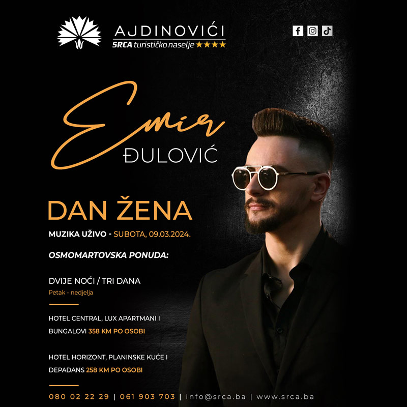 U večeri 9. marta, naš centar će oživjeti uz melodije Emira Đulovića, koji će bez sumnje prirediti atmosferu ljubavi, radosti i nezaboravne zabave.